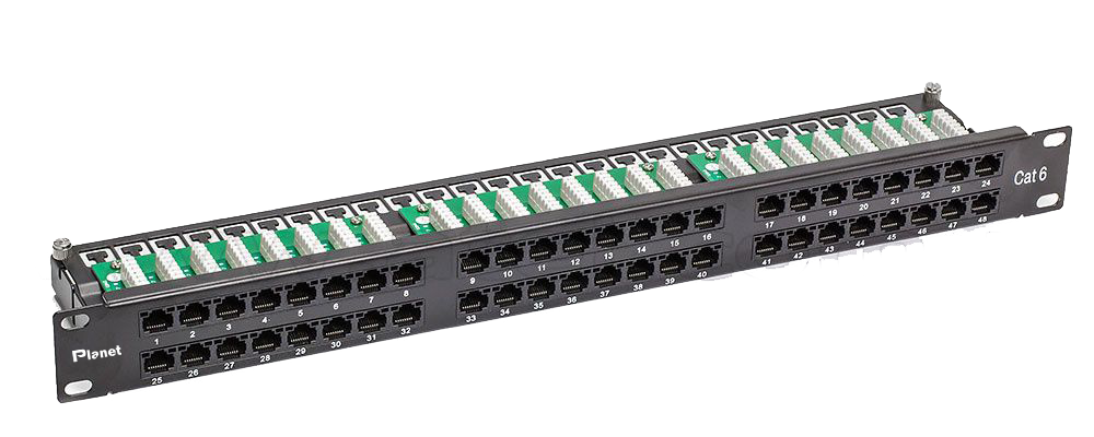 Planet 19” rack-mounted Unscreened RJ45 ISDN/Telephone Patch Panels are available in 1U 25 and 50 port versions